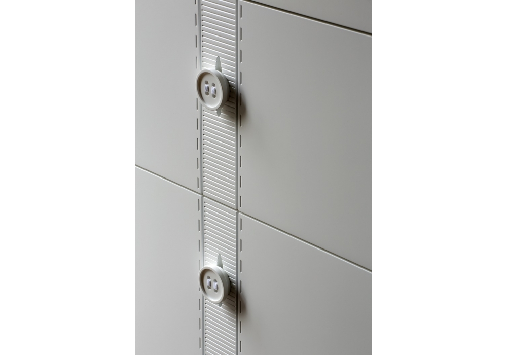 Another Day, von Silvano Pierdonà für Capodopera entworfen, ist eine Kommode Large aus Elementen, die im 45°-Winkel verbunden und manuell in matt lackierter Ausführung zusammengesetzt sind. Die Öffnung erfolgt per Push-Pull, oder über 3D-Knöpfe