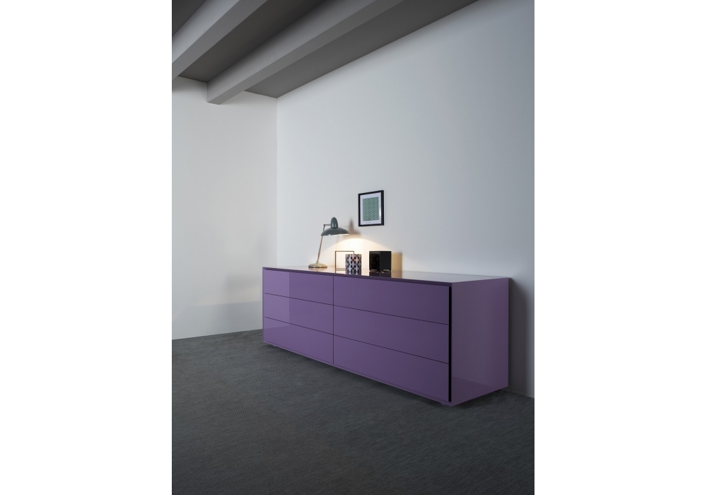 Quarantacinque von Silvano Pierdonà für Capodopera entworfen, ist eine Kommode in matt, glänzend lackierter Ausführung oder in verschiedenen Holzausführungen.