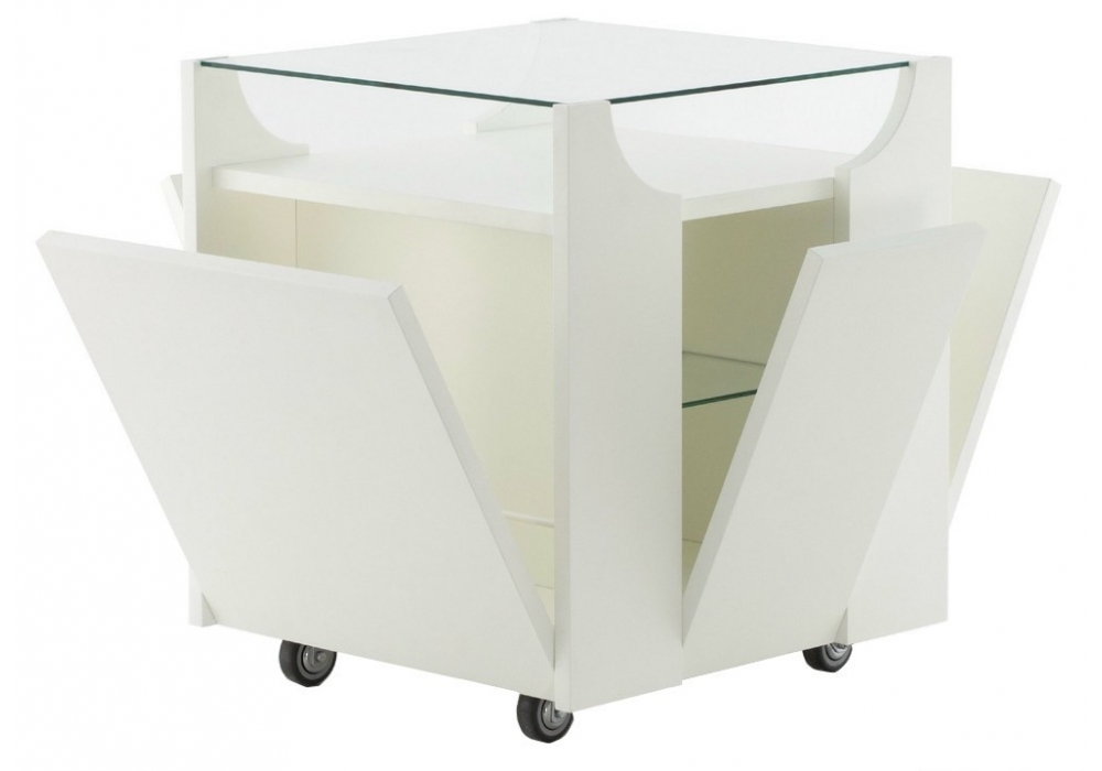 Cubovo is a trolley designed by Bruno Munari for Porro. Trolley with lacquered wood structure and tempered glass plate. Its design, typical of the Sixties, makes it an icon, a must – have piece, able to last through transient fashions. It can be used as a trolley in the dining room, or in the bedroom as a capacious bed-side table, thanks to its compact form with 4 folding openings.