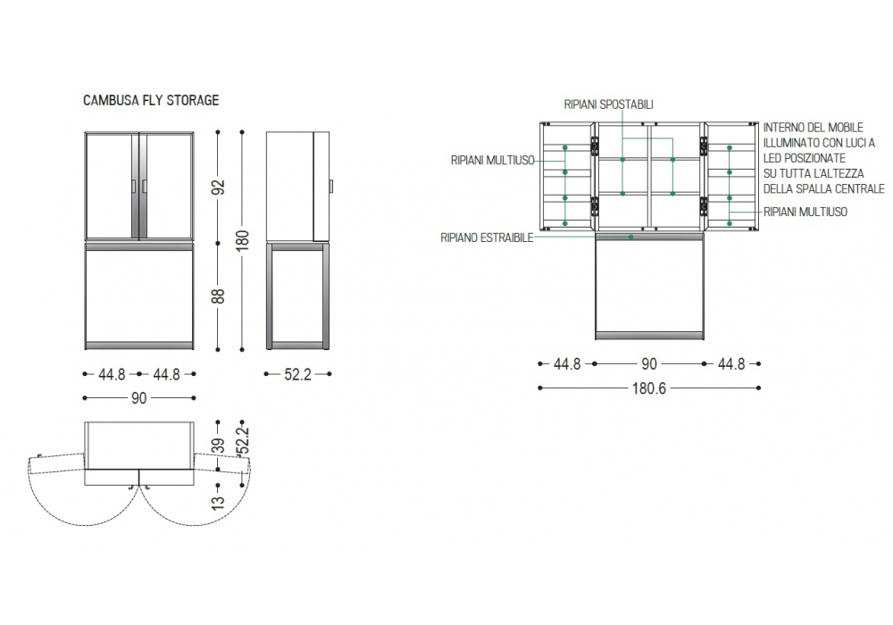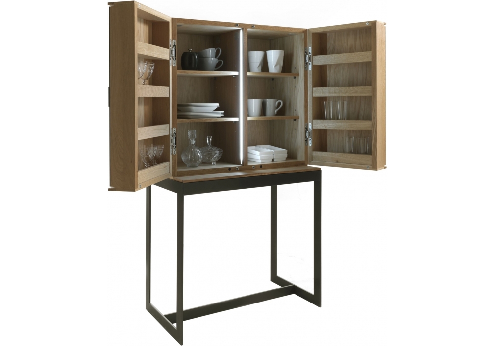 Cambusa Fly Storage von Gabriele & Giuliano Cappelletti für Riva 1920 entworfen, ist ein multifunktionaler Kommode aus Tischlerplatte mit Doppeltür und Schubladen aus Massivholz, die mit Schwalbenschwanzverbindungen zusammengebaut sind und sich durch eine Eisenbasis auszeichnen. Das Innere des Schranks wird durch LED-Streifen beleuchtet, die an der zentralen Schulter oder im Hut positioniert sind und deren Zündung automatisch durch Sensoren erfolgt, die beim Öffnen der Türen aktiviert werden.