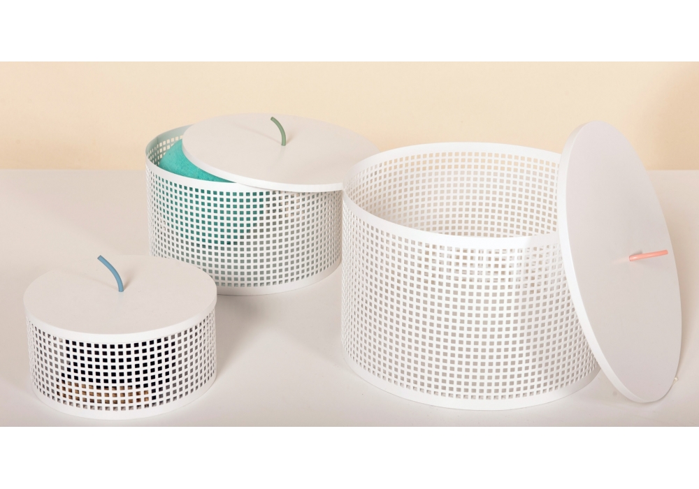 Boîte designed by OK Design is a sophisticated box inspired by the traditional hat box. Their perforated surface adds tactility and transparency. Each box comes with 4 different colour cords for the PVC handle which can be replaced according to your preferences. Available in 3 sizes and 2 different finishes: white or black.