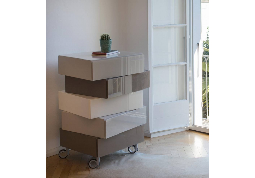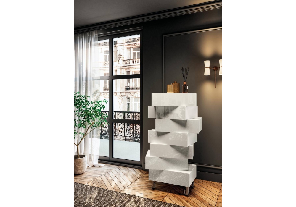 Morgana von Daniele Lago entworfen, ist eine Kommode mit oder ohne Rollen, mit lackierter Struktur und Fronten aus glänzendem oder undurchsichtigem Glas. Struktur und Fronten in einer einzigen Farbe. Verfügbar in mehreren Ausführungen und Abmessungen.