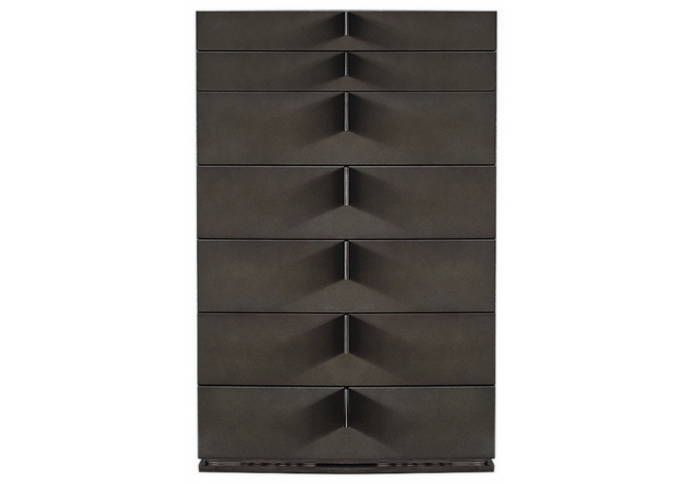 Ari von Emanuela Garbin & Mario Dell'Orto für Flou entworfen, ist eine Hemdenkommode mit 7 Schubladen aus matt oder glänzend ausgeführter lackierung mit "galuchat" effekt, verfügbar in 2 Farbtönen: deserto oder laguna. Griffe und Untergestell chromschwarz. Die ersten zwei schubladen der Hemdenkommode sind mit unterteilungen für schmuckstücke ausgestattet, mit stoff bezogen.