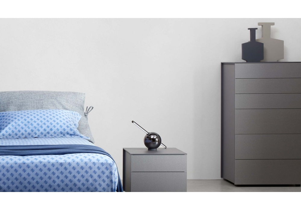 Juta von Pinuccio Borgonovo für Flou entworfen, ist eine Hemdenkommode mit besonderen kratzfesten Oberflächenausführungen (Style, Epoque, River, Private, Saffiano mit grau gebeizter Eichenkante) oder matt lackiert in folgenden Farben: Weiss, Sand, Bronze, Dunkelgrau, Seilbeige, Bleigrau, Greige.