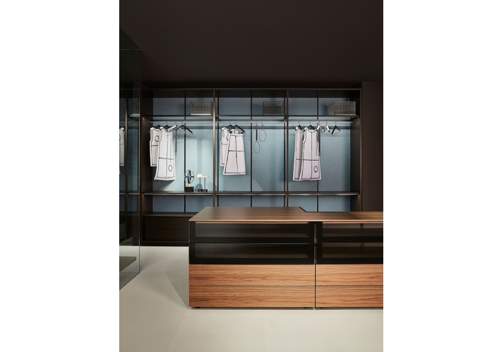 Hub, von Gabriele & Oscar Buratti für Porro entworfen, ist eine Kommode mit Holzstruktur in verschiedenen Ausführungen. Verfügbar in verschiedenen Modellen mit der Möglichkeit, den oberen Teil in Leder- und Kristallschubladen zu machen.