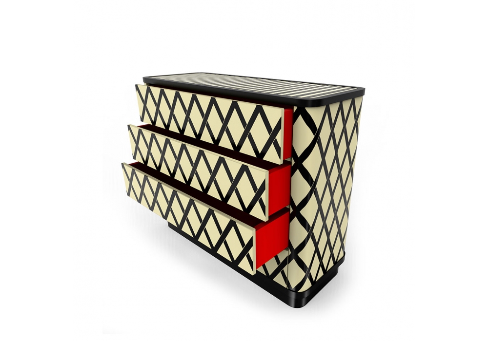 Napoleon von Matteo Cibic für Scarlet Splendour entworfen, ist eine Kommode aus MDF, Teakholz und Harzeinsatz.