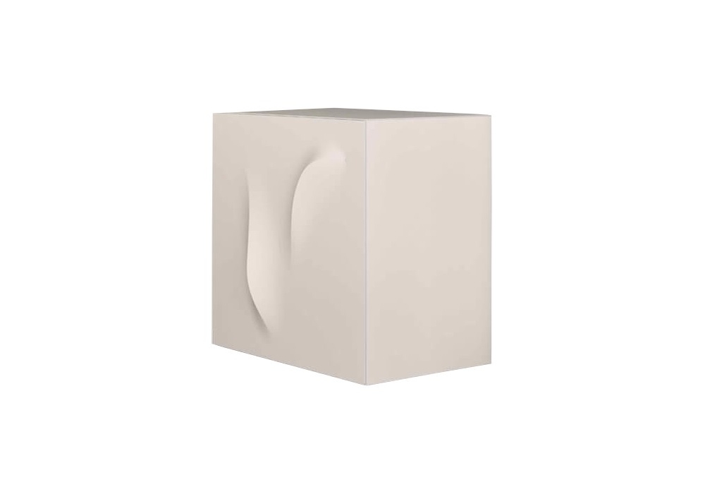 Riflesso D'Onda von Claudio Lovadina für Minotti Italia entworfen, ist ein hängender Behälter aus Agglomeratholz mit einer starren Polyurethantür, in einem beweglichen Regal. Vier Skulpturen Ihrer Wahl und zwei Größen erhältlich. Türöffnung rechts oder links.