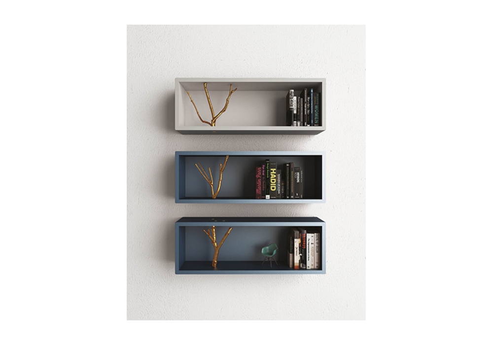Tri von DSH für Minotti Italia entworfen, ist ein Aufbewahrungsregal aus agglomeriertem Holz, geprägtes Finish in verschiedenen Farben erhältlich, verzweigter Einsatz aus Messingguss erhältlich in verschiedenen Ausführungen.