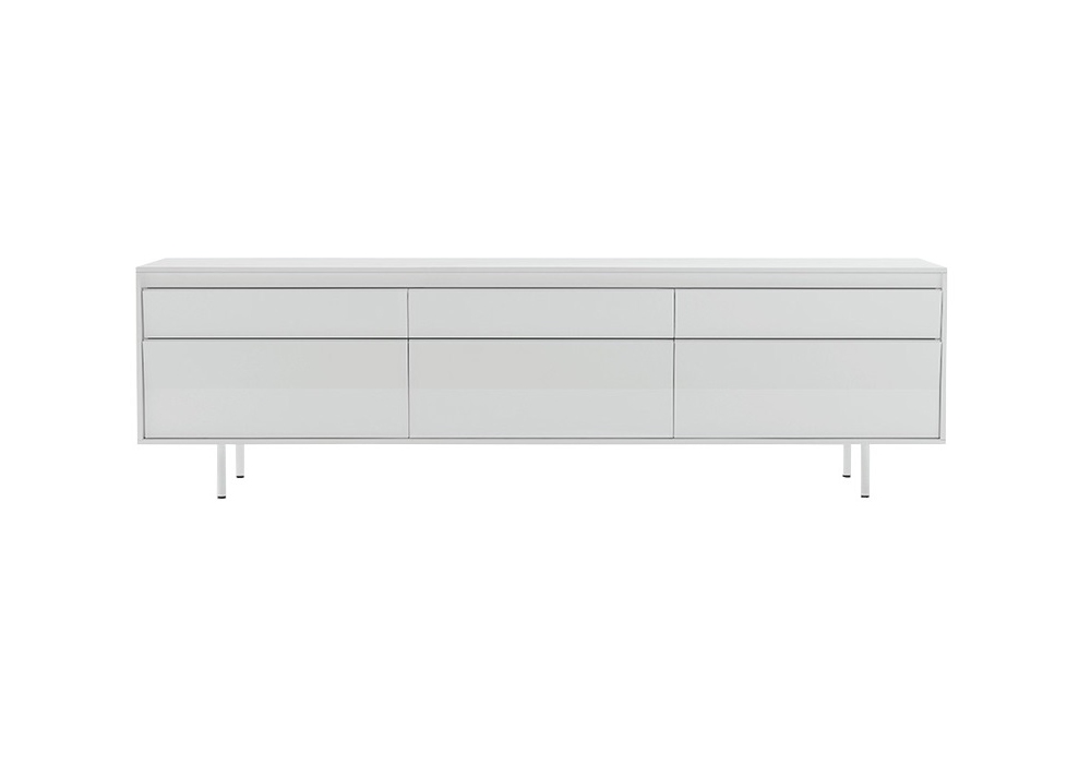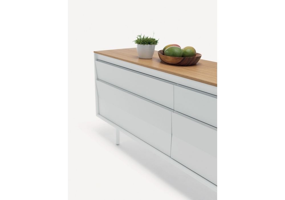 Ali von Salvatore Indriolo für Fantin entworfen, ist eine Kommode aus Metall, bestehend aus drei oder zwei Schubladen und einer Metallplatte, die in verschiedenen Farben oder in Holz in natürlicher Eichenfarbe erhältlich ist. Struktur in verschiedenen Ausführungen und in zwei Breiten erhältlich.