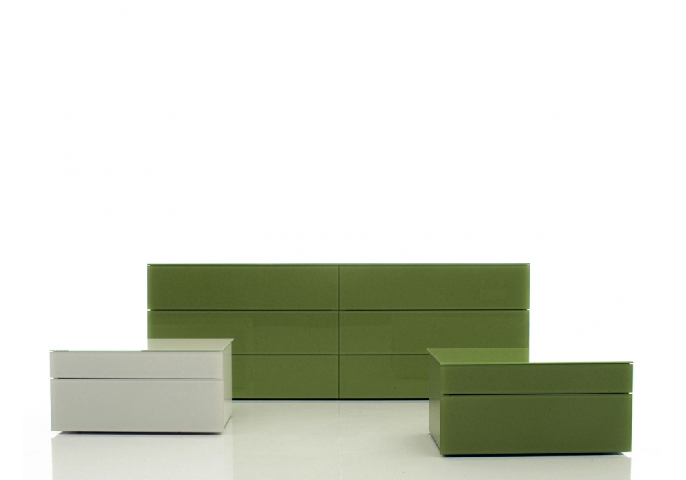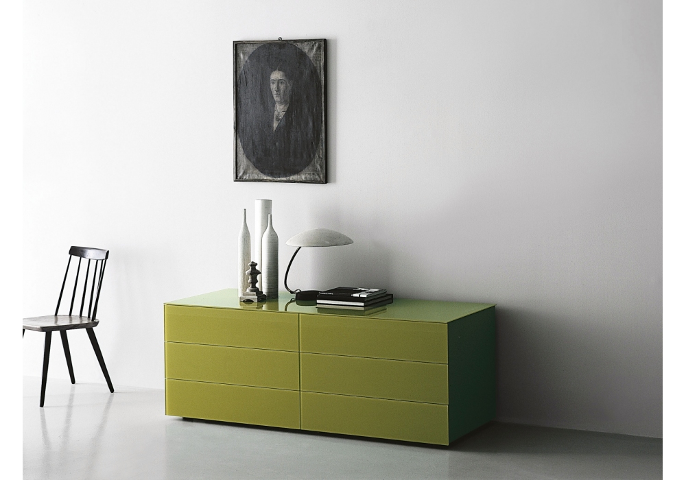 Boxes von Piero Lissoni für Porro entworfen, sind eine Kommode mit einer inneren Struktur aus Melamin-Spanplatten. Sie ist in farbigem Kristall, Mattlack oder Holz erhältlich.