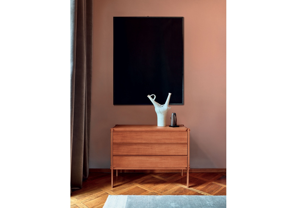 MHC.1 von Werner Blaser für Molteni&C entworfen, ist eine Kommode aus MDF-Strukturplatten mit honiggebeiztem Emien-Holz oder schwarz gebeizter Esche.