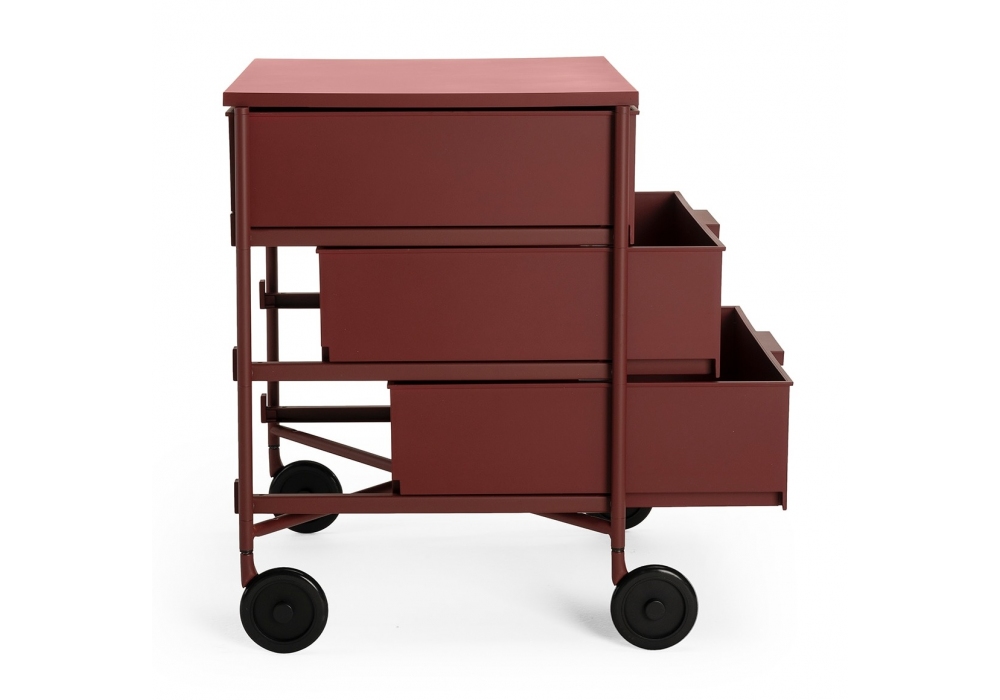 Mobil Mat von Antonio Citterio & Oliver Löw für Kartell entworfen, ist eine Kommode mit Rädern aus lackiertem Stahlgestell. Behälter und Regale aus recyceltem thermoplastischem Technopolymer mit Soft-Touch-Effekt. Verfügbar in mehreren Ausführungen und Abmessungen.
