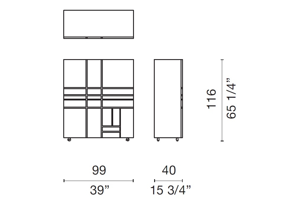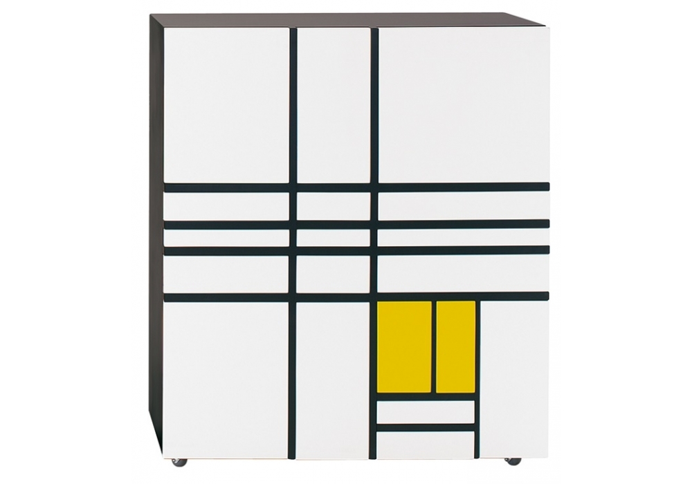 Homage to Mondrian 1 von Shiro Kuramata für Cappellini entworfen, ist ein Kommode mit Türen und Schubladen, inspiriert von den grafischeren Werken von Piet Mondrian.