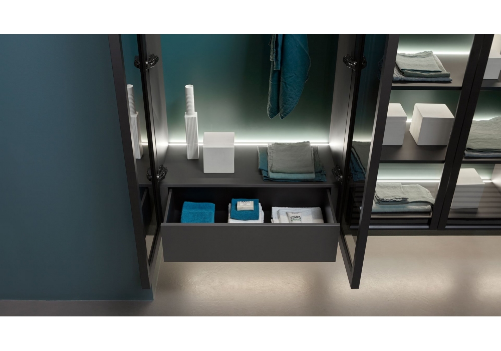 Bemade von Carlo Colombo für Antonio Lupi entworfen, ist eine Kollektion von Garderobensäulen, die zeitgenössisches Design und maximale Funktionalität vereint. Erhältlich in verschiedenen Größen, Ausführungen und Farben bieten sie unzählige Möglichkeiten zur individuellen Gestaltung von Badezimmern, Schlafzimmern oder Wohnzimmern. Klare Linien, klare Volumen und hochwertige Materialien schaffen eine anspruchsvolle Wohnarchitektur, die durch Details wie integrierte LED-Beleuchtung sowie edles Glas und edle Hölzer aufgewertet wird.