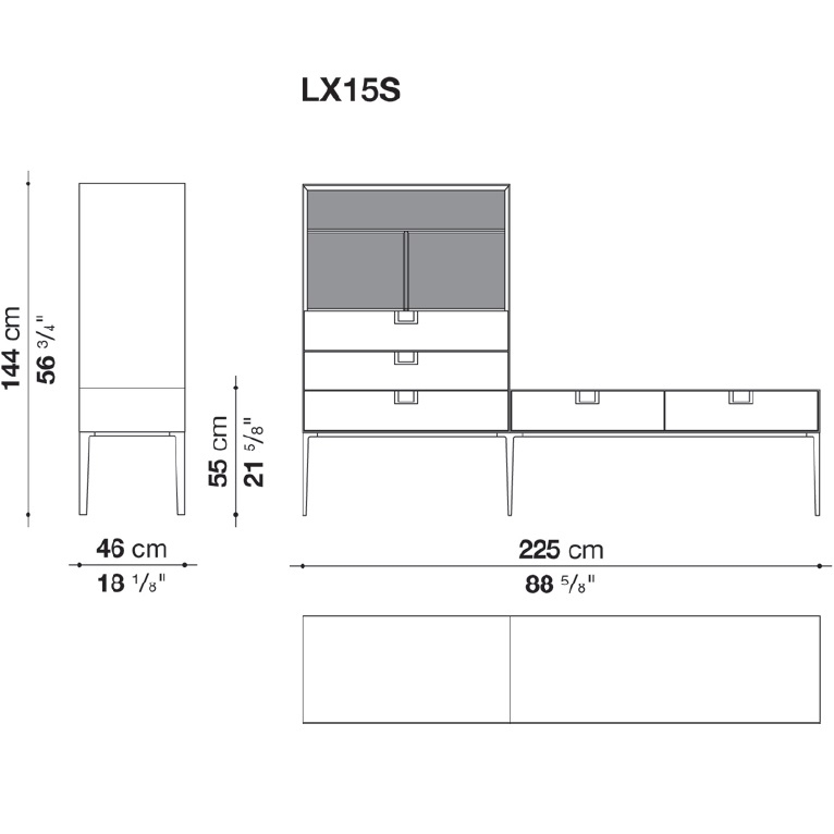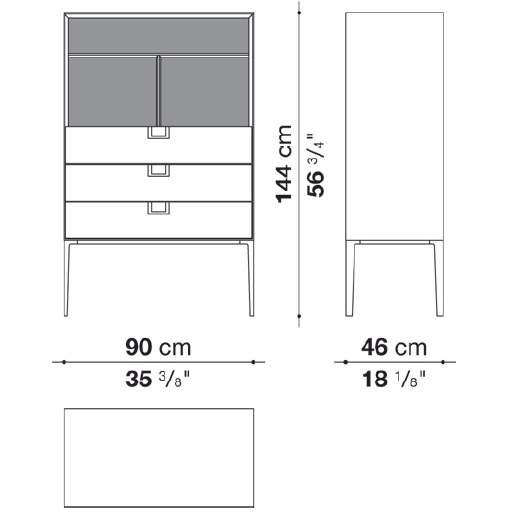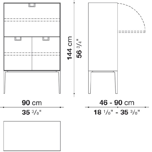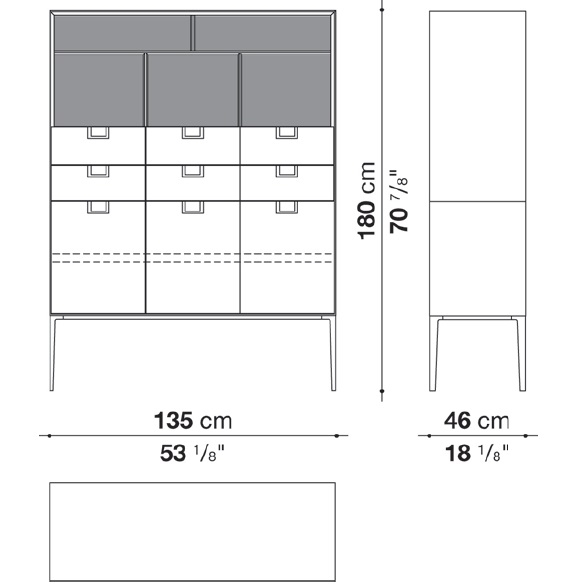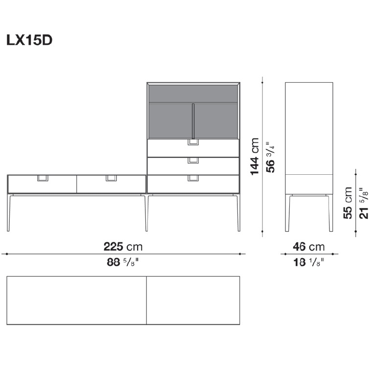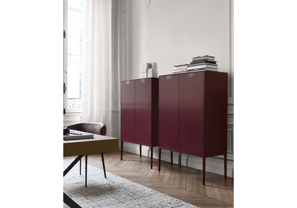 Alcor, von Antonio Citterio für Maxalto entworfen, ist eine Familie von Aufbewahrungsmöbeln, die mit Doppeltüren, Klappen oder in einer offenen Version erhältlich sind. Außengestell, Tür und Schubladenfront aus Paneel aus MDF Holzfaser mit Schellack Effekt schwarz lackiert, Schellack Effekt rot lackiert, Schellack Effekt soia lackiert, graphit grau patiniert lackiert oder braun patiniert lackiert. Innengestell aus Paneel aus MDF Holzfaser rot glänzend lackiert.