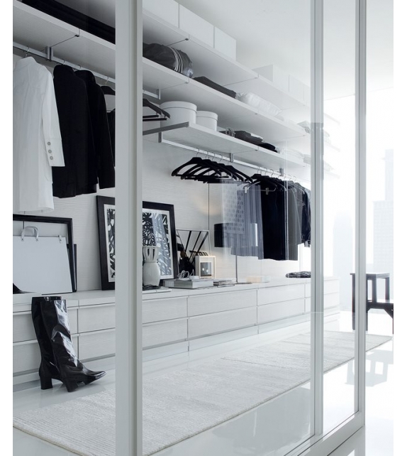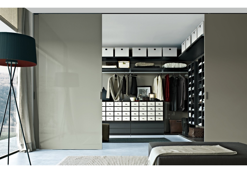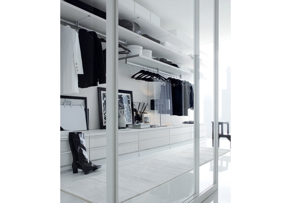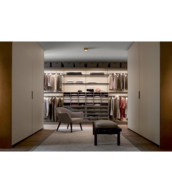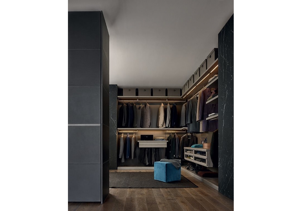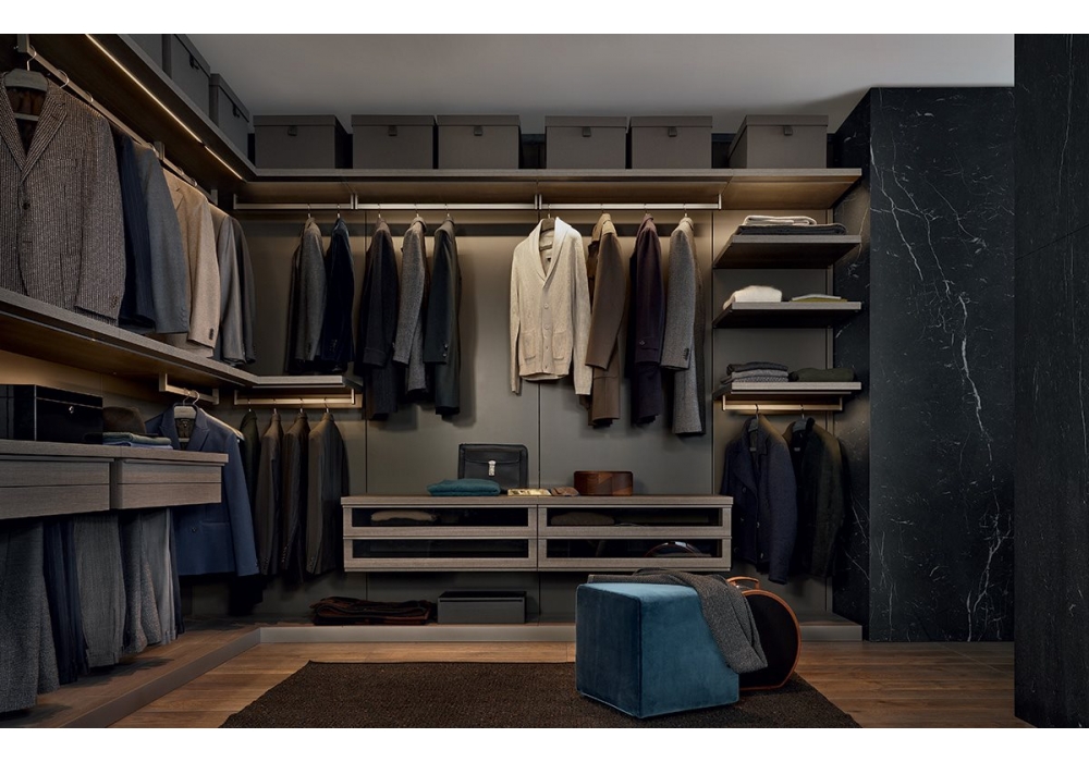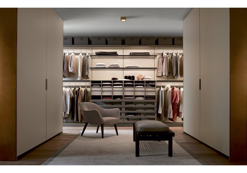 Ubik, von R&D Poliform entworfen, ist ein Ankleideraum, der dank einer Reihe von Behältern und Zubehör, Funktionalität und persönlichen Stil zusammenfällt.