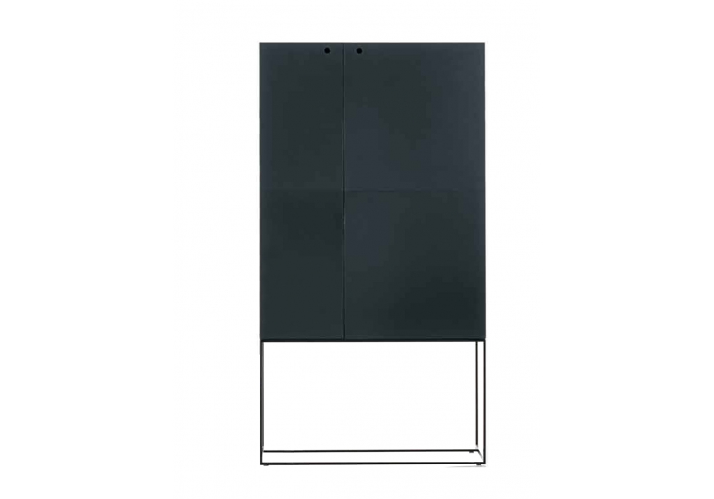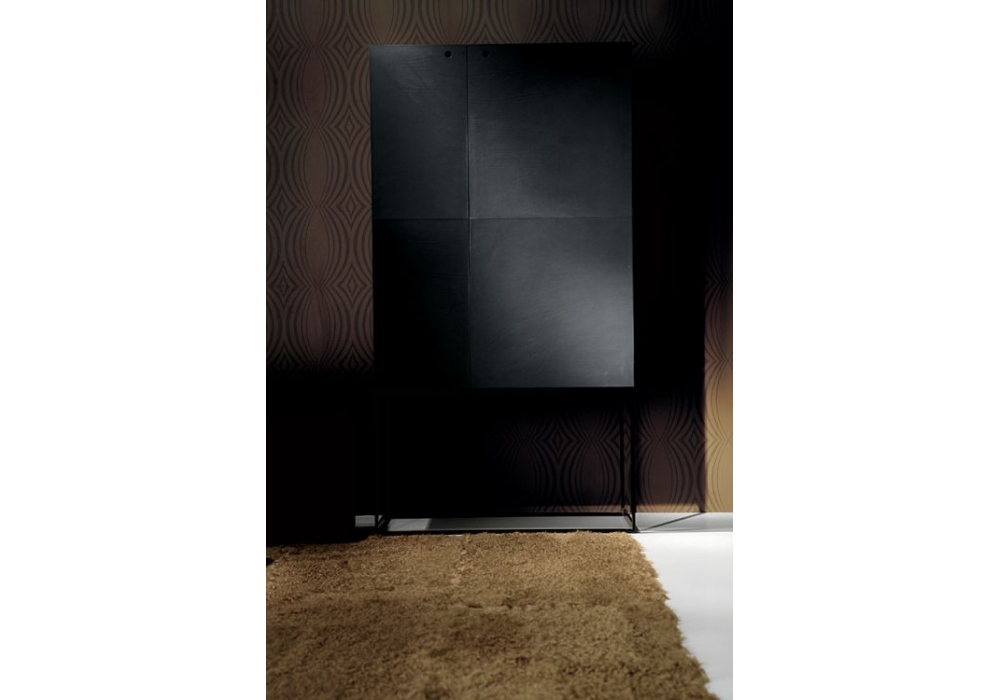 Arabesque entworfen und hergestellt von Ivano Redaelli, ist ein viereckiger Kleiderschrank mit zwei Türen, der aus Holz besteht und mit Vollnarbenleder bezogen oder mit matten oder glänzenden Lacken lackiert ist. Die Basis ist aus bronze- oder nickelfarbenem Metall.