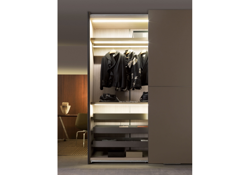 First von MisuraEmme entworfen, ist ein Kleiderschrank, der die eindrucksvolle Transparenz von Glas, das Spiel der Reflexionen von Spiegeln, die hellen Farben von Kleiderschränken aufgreift, die Räume multiplizieren und sie ins Unendliche verkleinern.