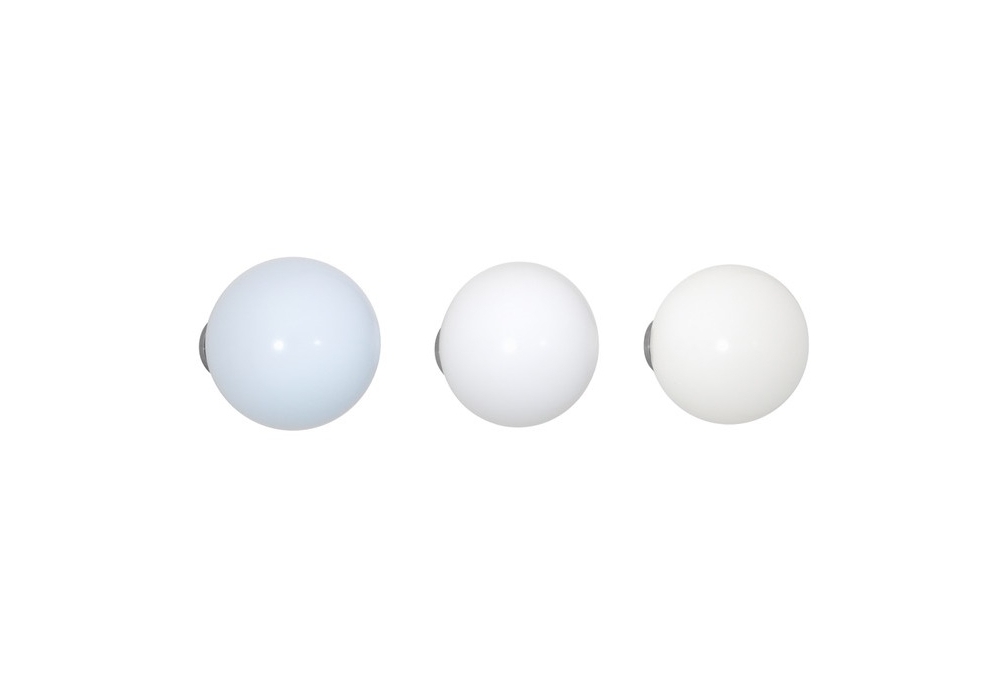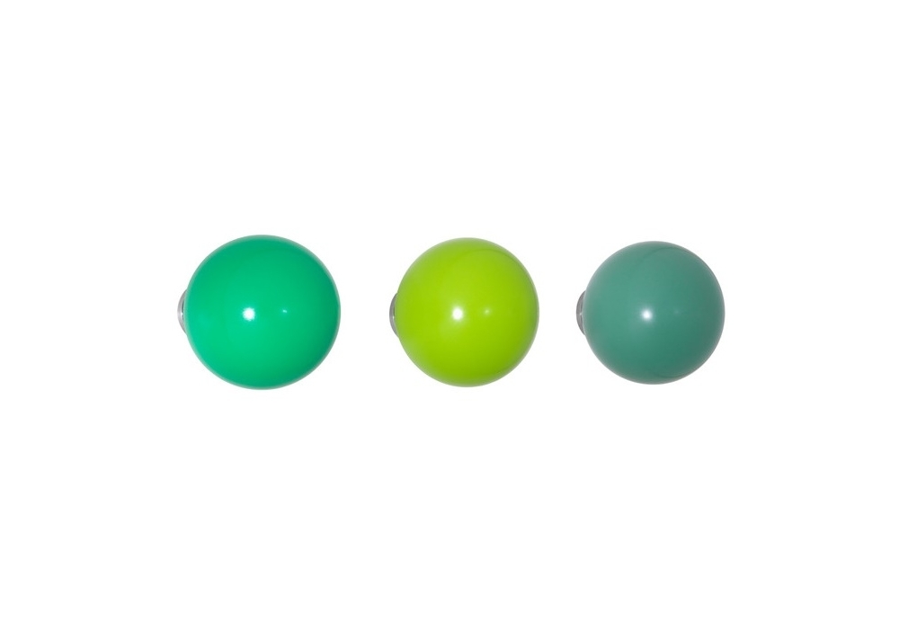 Im Rahmen ihrer Arbeit an der Vitra Colour Library hat Hella Jongerius die Coat Dots in den drei Farbgruppen Rot, Grün und Weiss entworfen, deren einzelne Nuancen fein aufeinander abgestimmt sind. Die Coat Dots werden als Set von jeweils drei Kugeln inklusive Befestigungsmaterial angeboten und sind zur Selbstmontage geeignet.