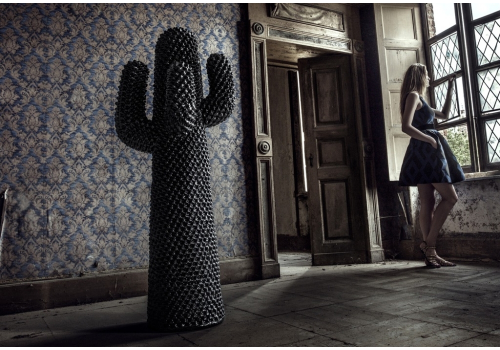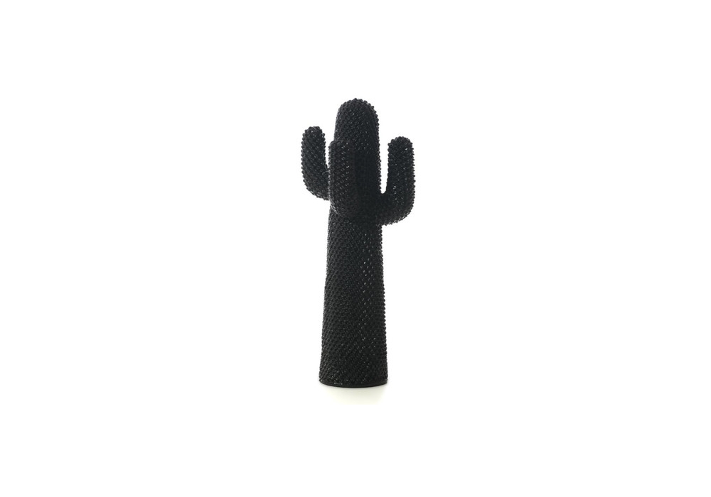 Nerocactus, von Guido Drocco und Franco Mello für Gufram entworfen, ist ein Kleiderbügel aus Polyurethanschaum, behandelt mit Guflac, wasserabwaschbarer Farbe. Cactus, das unzähligen, freien und oft mehrdeutigen Interpretationen unterworfen ist, ist die Ikone des italienischen Designs, die die häusliche Landschaft revolutioniert hat, indem sie die Grenzen zwischen Innen- und Außenbereich aufhob. Cactus präsentiert sich als ironisches Totem.
