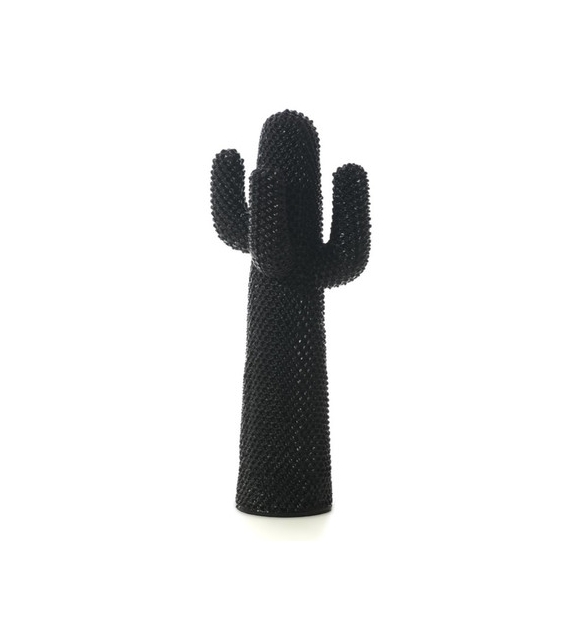 Nerocactus, von Guido Drocco und Franco Mello für Gufram entworfen, ist ein Kleiderbügel aus Polyurethanschaum, behandelt mit Guflac, wasserabwaschbarer Farbe. Cactus, das unzähligen, freien und oft mehrdeutigen Interpretationen unterworfen ist, ist die Ikone des italienischen Designs, die die häusliche Landschaft revolutioniert hat, indem sie die Grenzen zwischen Innen- und Außenbereich aufhob. Cactus präsentiert sich als ironisches Totem.