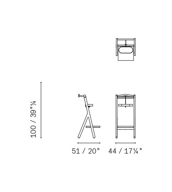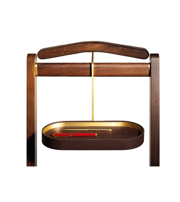 Ren designed by Neri & Hu for Poltrona Frau is a valet stand. It features a hanger for clothes, an oval key tray and a bottom