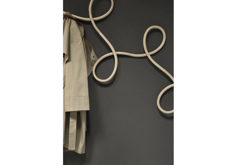Waltz von Gamfratesi für Gebrüder Thonet Vienna entworfen, ist eine modulare Wandgarderobe aus gebogenem Eschenholz. Oberflächen und Farben der Standardkollektion.
