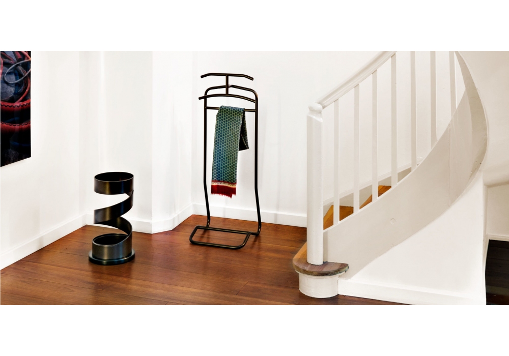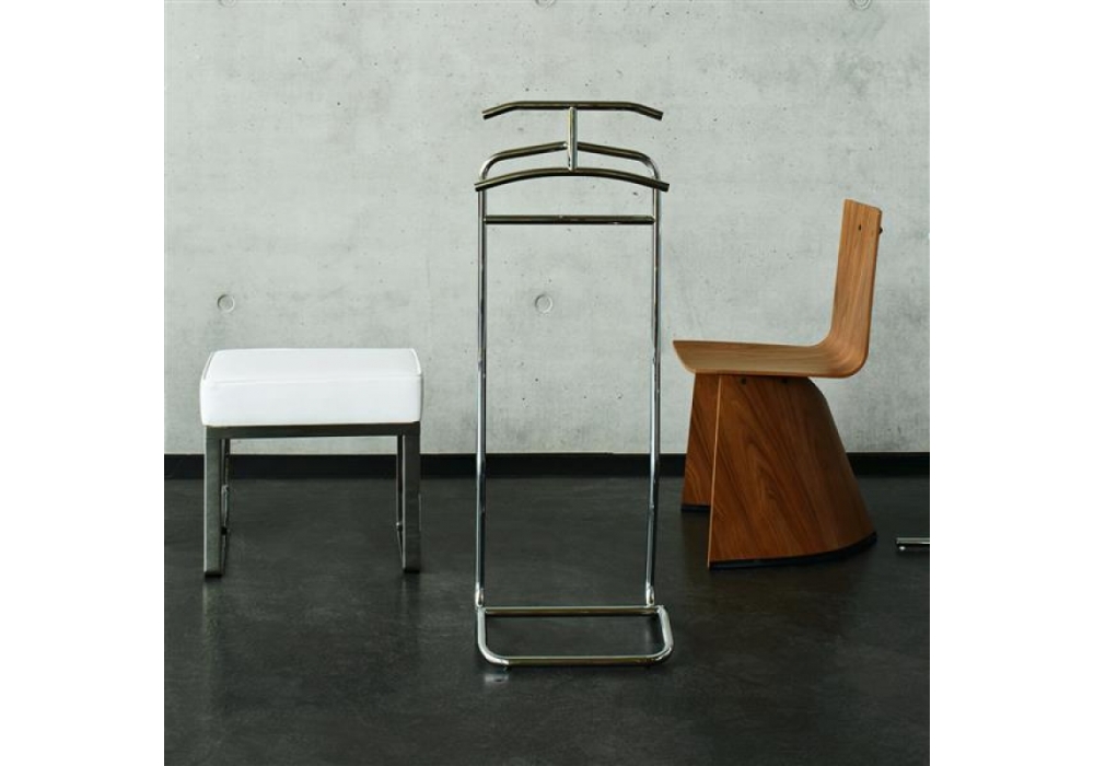Mandu von Eckart Muthesius für ClassiCon entworfen, ist ein schöner Stummer Diener mit Stahlrohr. Rutschstopp aus Silikon für Hosen. Kunststoffgleiter.