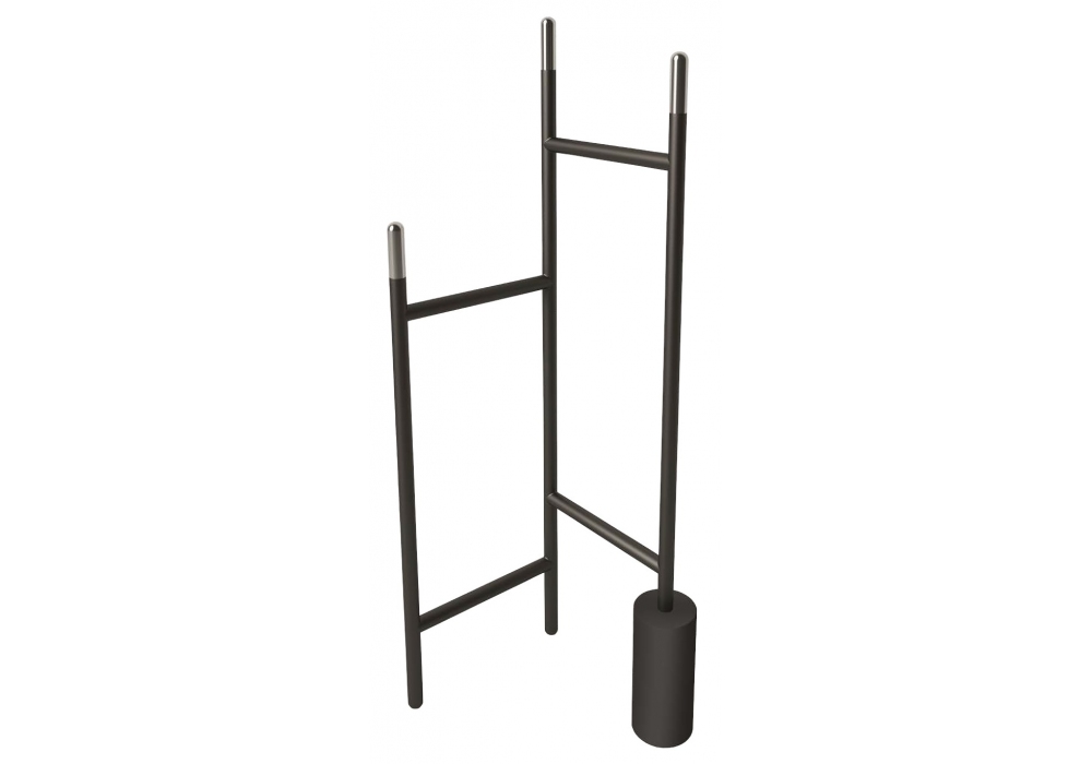 Dressme von Davide Negri für Minotti Italia entworfen, ist ein Stummer Diener aus Eisenrohr mit geprägter Oberfläche in Anthrazitfarbe, Einsätze aus satiniertem Metall erhältlich in Nickel oder lackiertem Messing.
