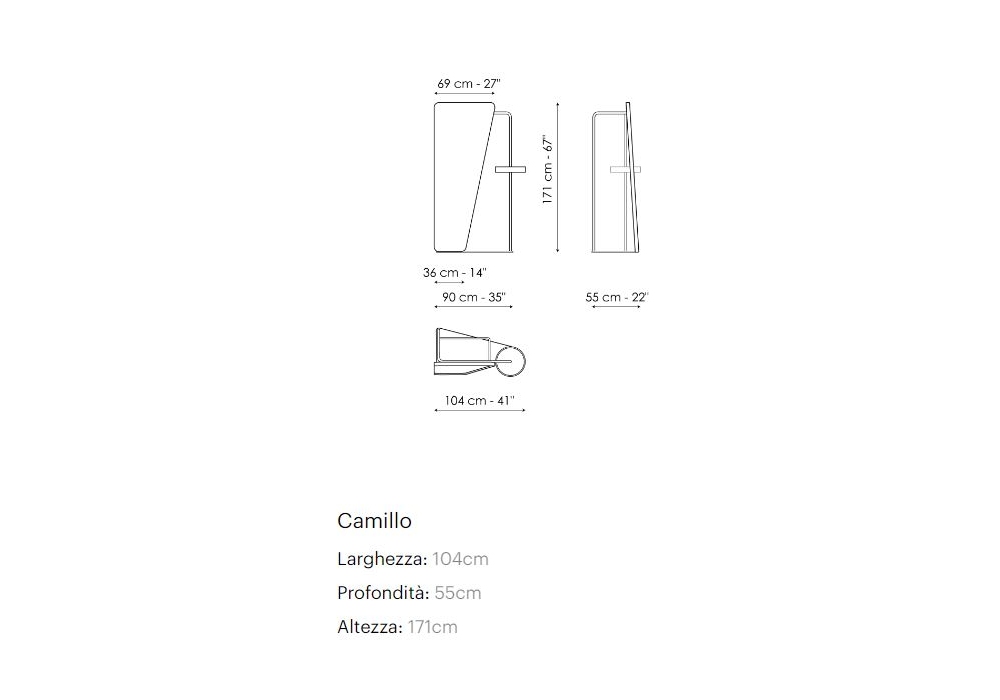 Camillo von Gianmarco Codato und Luciano Trevisiol für Bonaldo entworfen, ist ein Herrendiener, der in zwei Farbkombinationen erhältlich ist. Die Struktur ist aus Metall und die Basis aus Keramik. Das Tablett kann in der gleichen Ausführung wie die Struktur oder in einer Farbe Ihrer Wahl zwischen Messing und Kupfer sein.