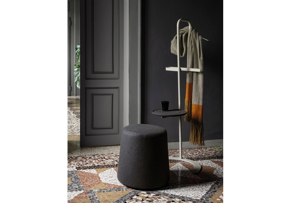 Zoe von Antonella Scarpitta für Bolzan entworfen, ist ein Herrendiener mit mehreren praktischen Funktionen für das Schlafzimmer: abnehmbarer Pouf, gefüttertes Tablett und eine praktische Kleiderablage. Struktur aus matt lackiertem Metall und Stoffbezug.