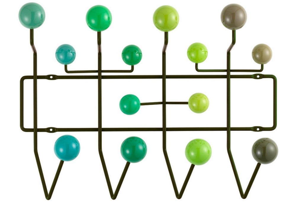 Die ursprüngliche Farbkomposition von Hang it all stammt von Ray Eames. Zur Feier ihres 100. Geburtstages im Dezember 2012 entwickelten Vitra und das Eames Office drei Varianten der Garderobe in den frischen Farbwelten Rot, Grün und Weiss.