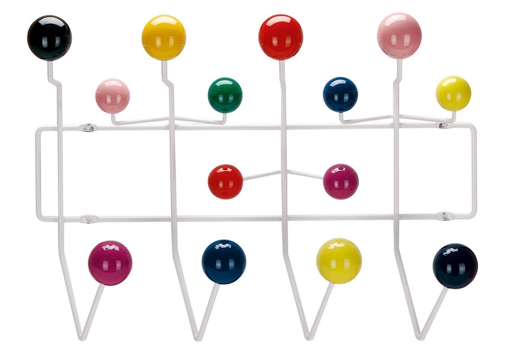Vitra Hang il all: Anstelle einfacher Haken sollen bei Hang it all Holzkugeln in kräftigen Farben Kinder dazu ermuntern, wortwörtlich "all ihre Sachen" daran aufzuhängen. Dank des regelmässigen Abstandes zwischen den Kugeln lässt sich die Garderobe beliebig oft nebeneinander montieren. Sie ist eine fröhliche Alternative zu langweiligen Kleiderhaken – und das nicht nur im Kinderzimmer.