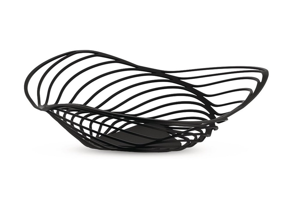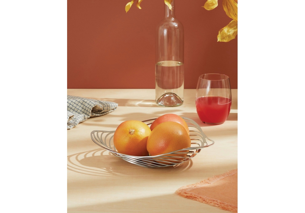 Trinity von Adam Cornish für Alessi entworfen, ist ein Korb aus Stahl verfügbar in zwei Ausführungen.