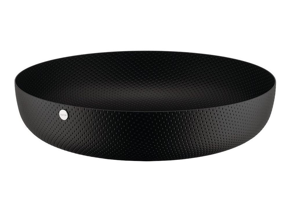 JM17 T von Jasper Morrison für Alessi entworfen, ist ein runder Korb aus Stahl mit Reliefdekor. Erhältlich in drei Größen.