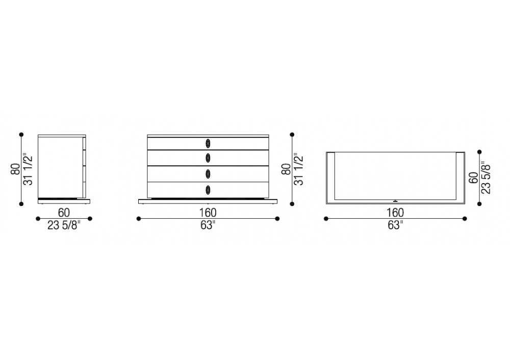 Orfeo von Angelo Capellini Staff für Opera Contemporary entworfen, ist eine Kommde mit 4 Schubladen aus edlem Makassar Ebenholz mit Hochglanz Ausführung, angereichert mit Griffen und Profilen aus gebürsteten Messing.