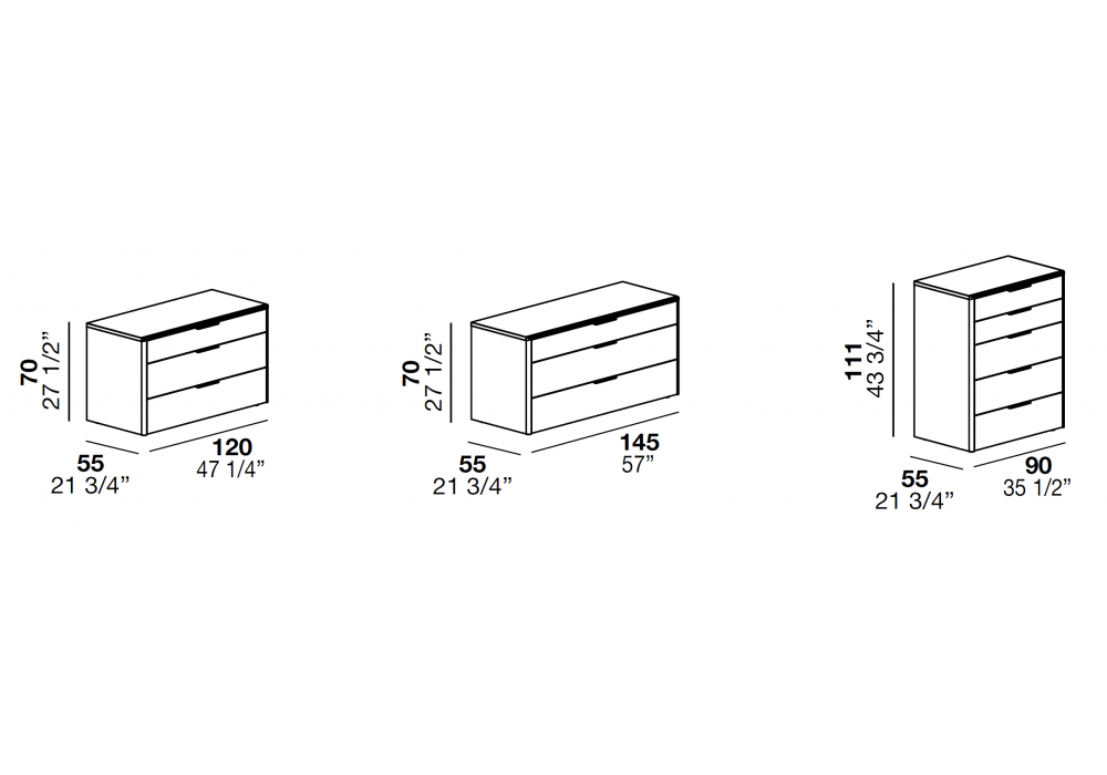 Timeless von Enrico Cesana für Alf Dafrè entworfen, ist eine Kommode aus furniertem oder lackiertem Holz. Die Schubladen sind mit einer Schließhilfe ausgestattet. Metallgriffe in Moka Shine-Finish.
