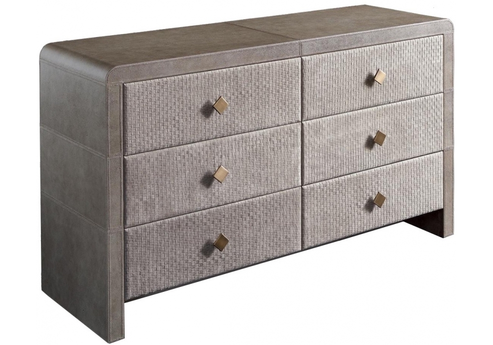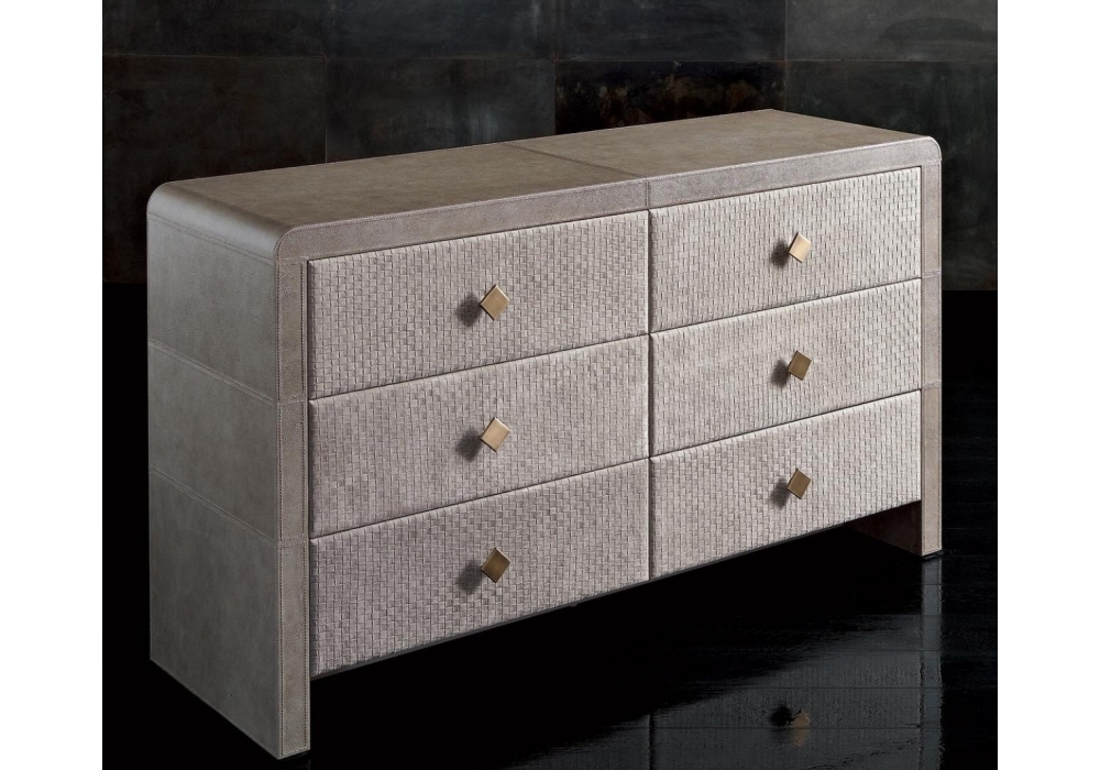 Reko von Rugiano entworfen, ist eine Kommode mit Lederbezug. Details in Stahl oder Bronze. Erhältlich in zwei verschiedenen Größen.