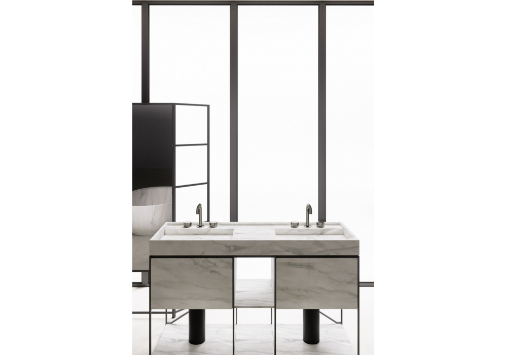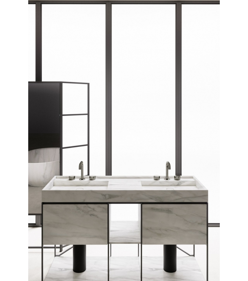 R.i.g. entworfen von Mikal Harrsen ist ein modulares Badezimmersystem. Das Modul wurde speziell für den Einsatz in Badezimmern entwickelt, um sowohl Wand- als auch Inselkompositionen zu erhalten. Bei freistehenden Installationen strikt befolgen. Erhältlich in verschiedenen Größen und Ausführungen. Wenden Sie sich an unseren Kundendienst, um Ihr Gerät zu entwerfen.