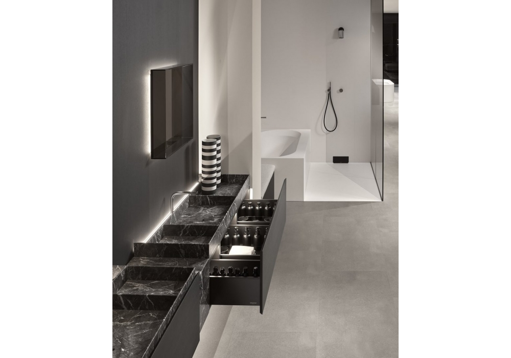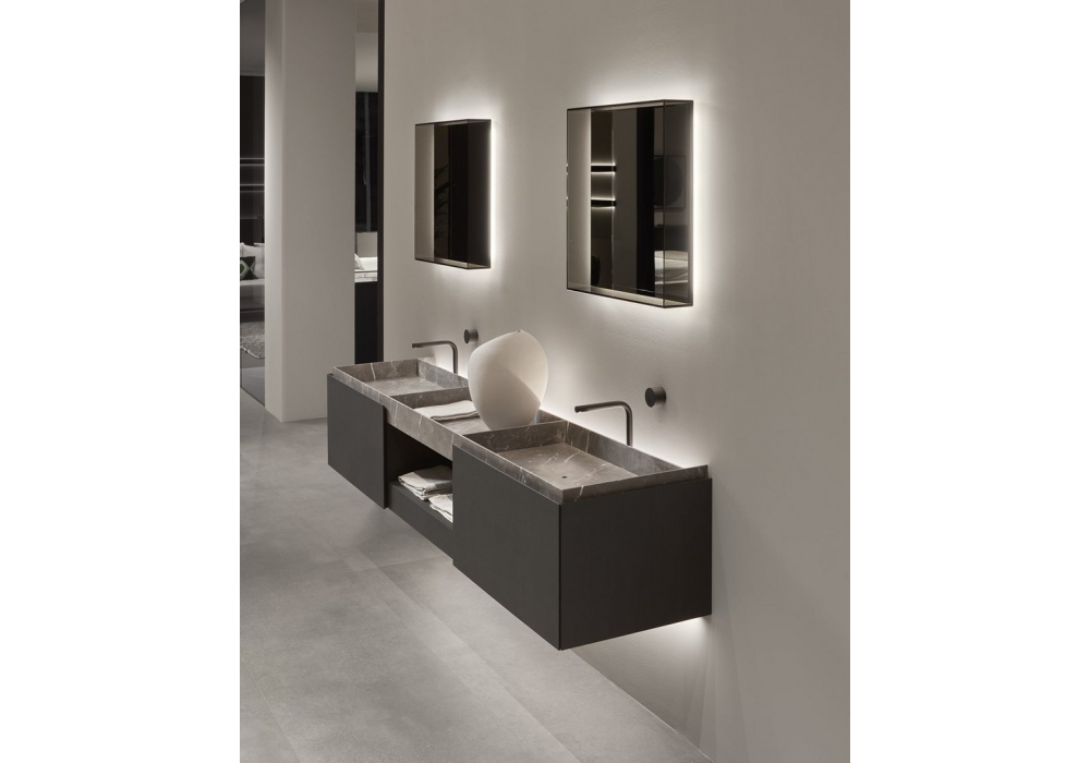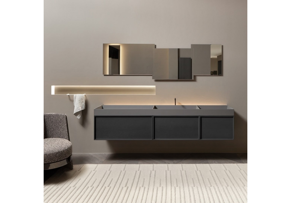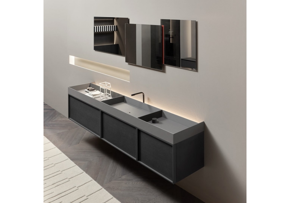 Nabatei von Antonio Lupi entworfen, ist ein System aus Marmorwaschbecken und -schränken, das Schlichtheit, Eleganz und Funktionalität vereint. Sie zeichnen sich durch klare geometrische Linien und geringe Materialstärken aus, die die Einzigartigkeit des Steins hervorheben. Jedes Waschbecken bietet Platz für Armaturen, Zubehör oder Hauptwaschbeckenfunktionen, während wandmontierte oder bodenstehende Schränke leichte und harmonische Kompositionen vervollständigen. Die Kollektion umfasst kubische, freistehende und Aufsatzwaschbecken in Cristalmood oder Marmor und bietet modulare Lösungen und individuelle Konfigurationen für jedes Projekt.
