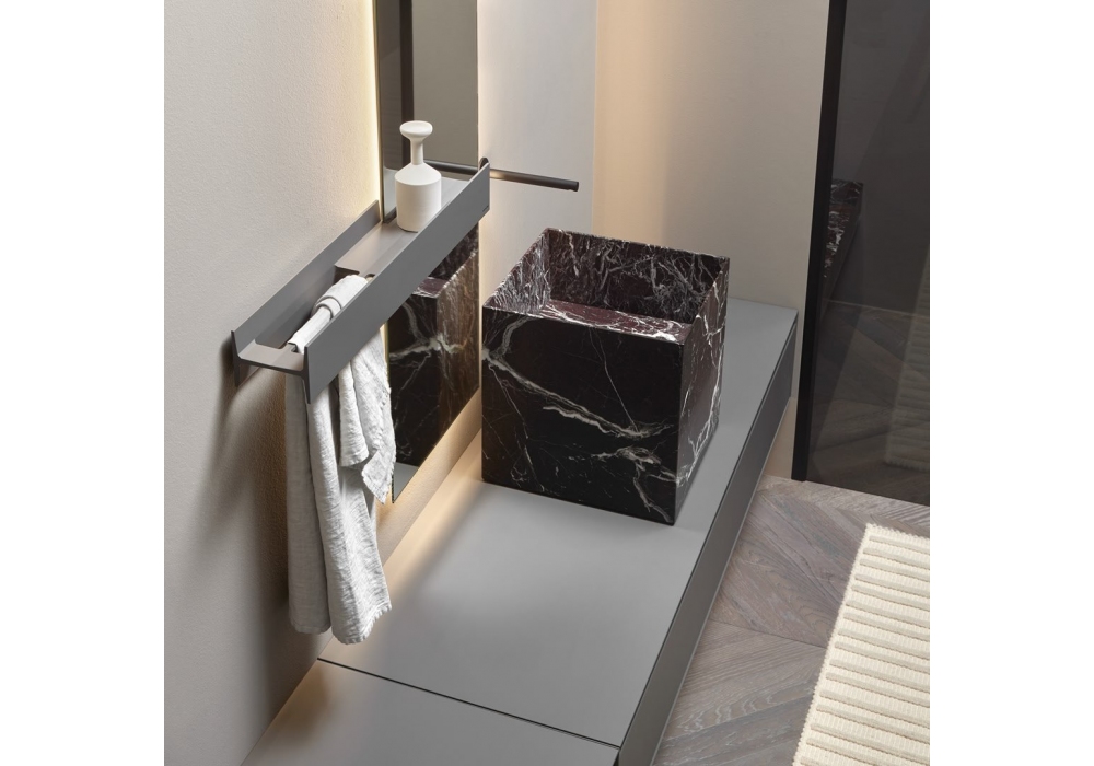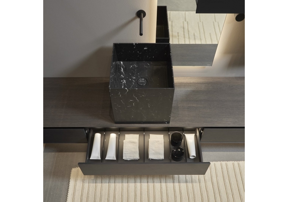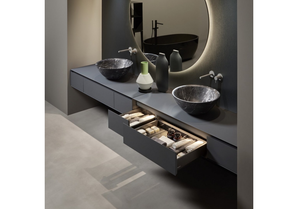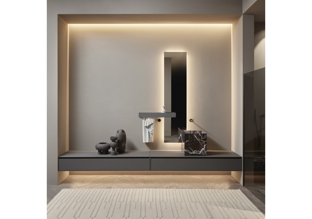Panta Rei von Carlo Colombo für Antonio Lupi entworfen, ist ein modulares Badezimmersystem, das die Kostbarkeit von Holz, die Wärme von Holz und die Perfektion von Lack vereint. Eine Kollektion, bei der Material zu Design wird, in einer harmonischen Balance zwischen Funktionalität und Ästhetik. Jedes Element ist so konzipiert, dass es mit den Formen der Waschbecken interagiert und den Raum auf fließende und zeitgenössische Weise interpretiert und das Konzept des Badezimmers als Raum ohne Grenzen neu definiert.