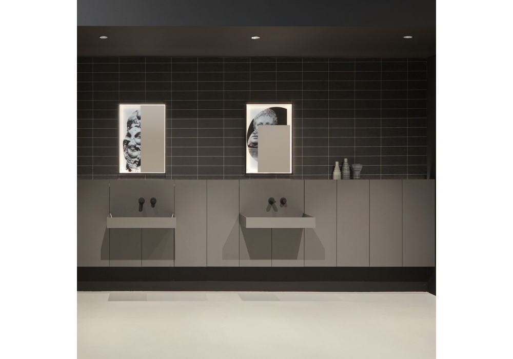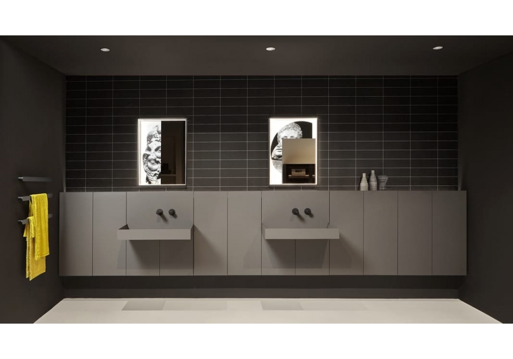 Showdown von Nevio Tellatin für Antonio Lupi entworfen, ist ein System, das das Badezimmer neu erfindet, indem es ikonisches Design mit moderner Funktionalität verbindet. Inspiriert vom berühmten Slot-Waschbecken aus dem Jahr 2002, integriert Showdown Strip mit den Möbeln der Anima Liquida-Kollektion und setzt so ein elegantes und harmonisches architektonisches Statement. Die Kombination aus horizontalen und vertikalen Flächen, edlen Materialien und intelligenten Aufbewahrungslösungen schafft einen klaren, minimalistischen und hochfunktionalen Raum, in dem Vergangenheit und Gegenwart in einem zeitlosen Design verschmelzen.