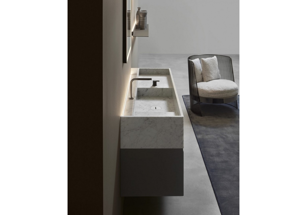 Street von Antonio Lupi entworfen, ist ein Waschtischsystem, das strenge Geometrie und modernes Design vereint. Mit seinen schlichten Linien und satten Marmortönen fügt sich Street nahtlos in jeden Raum ein: wandmontiert, auf dem Waschtisch montiert oder eingelassen. Seine modulare Eleganz und die strukturierte Qualität unterstreichen die Ästhetik des Badezimmers und unterstreichen sowohl die Einzigartigkeit des Materials als auch Antonio Lupis charakteristische Handwerkskunst.