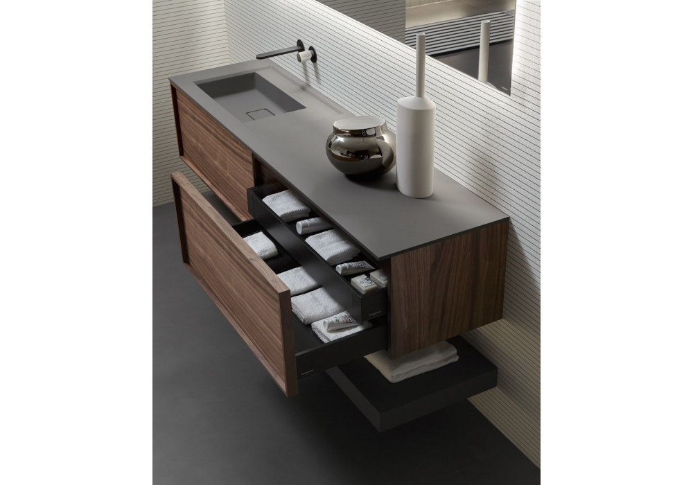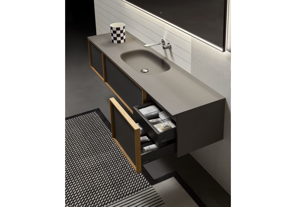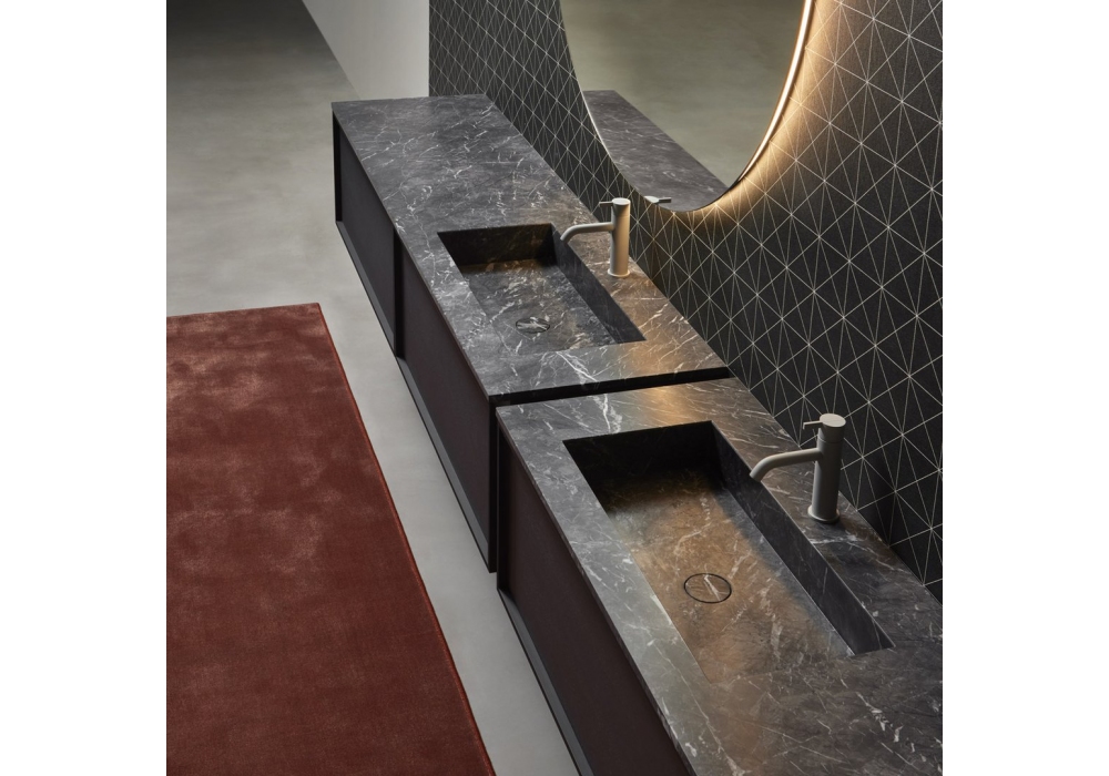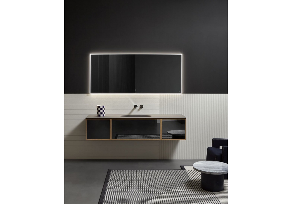 Riquadro von Antonio Lupi entworfen, ist ein System mit minimalistischem, zeitgenössischem Design, das sich durch reine Geometrie und perfekt proportionierte Volumen auszeichnet. Der geprägte Rahmen, ein charakteristisches Element des Projekts, umschließt und betont die Holz-, Lack- oder versilberten Glasoberflächen und erzeugt ein raffiniertes Zusammenspiel von Materialien, Farben und Reflexionen. Leichtigkeit, Eleganz und formale Präzision vereinen sich zu einer Kollektion, die sich in unterschiedliche Stilkontexte einfügt und Funktionalität und Ästhetik in perfekter Harmonie vereint.