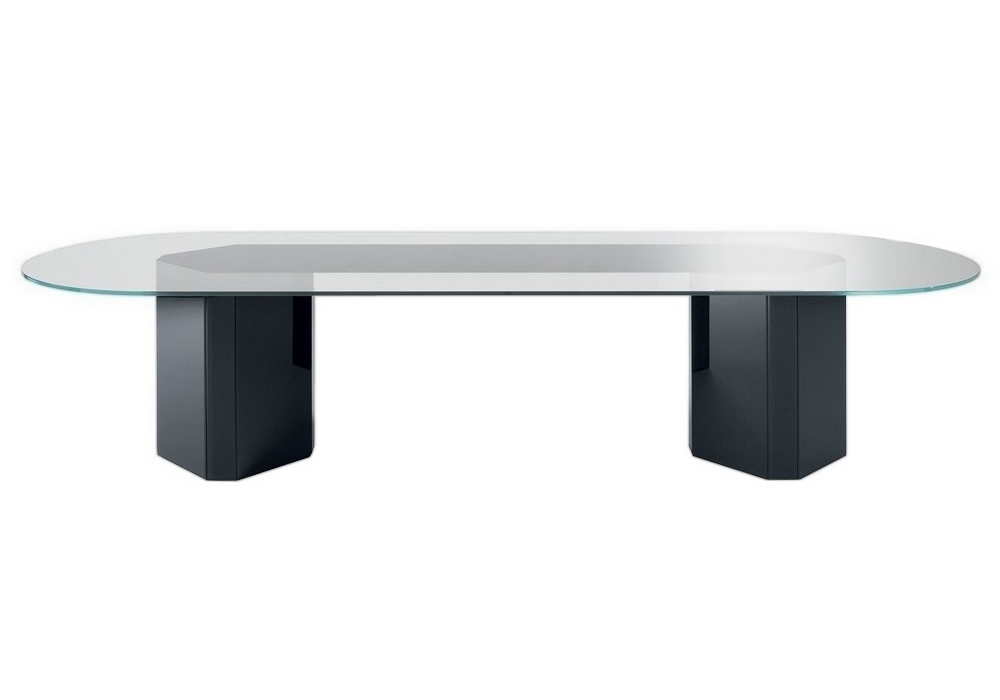 Akim von Oscar & Gabriele Buratti für Gallotti&Radice entworfen, ist ein Ovaler Tisch aus Glasplatte Extralight 15mm, in der Mitte hochglanz nach Musterkarte lackiert. Gestell Holz mit vorgespanntem lackiertem Glas 6mm umkleidet. Auf Wunsch lieferbar auch mit Kabeldurchlass. Akim kann in modularer Weise, auch in Sondermassen verwendet werden (Akim System).