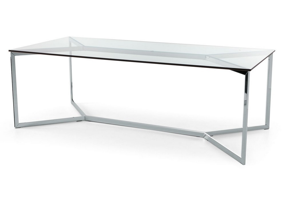 Carlomagno XL von Pierangelo Gallotti für Gallotti&Radice entworfen, ist ein Tisch mit 19mm transparenter Glasplatte. Struktur aus hellem Edelstahl (50x25x3mm). Auch verfügbar in satiniertem Edelstahl.