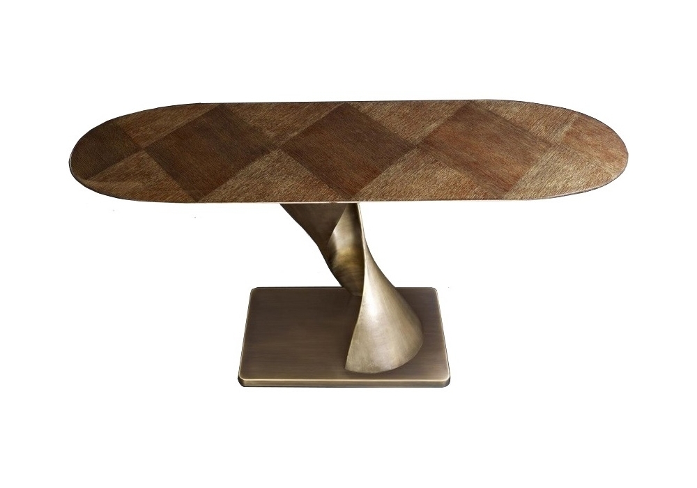 Zoe von Rugiano entworfen, ist eine Konsole mit Platte aus Leder, Marmor, Ebenholz oder dekoriert und Basis aus bronziertem Messing.