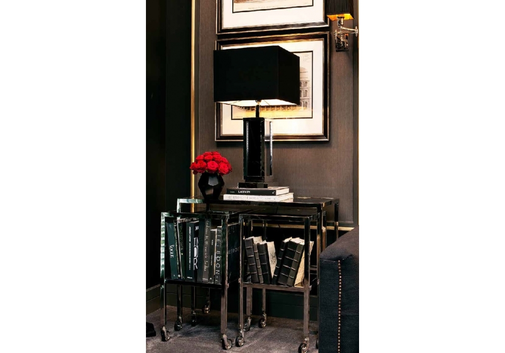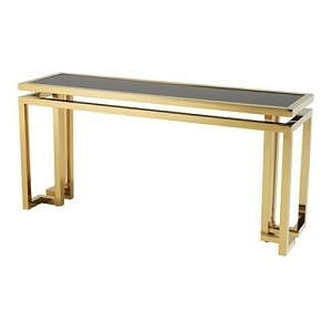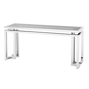 Palmer Konsole von Eichholtz entworfen, ist ein großer rechteckiger Tisch aus Edelstahl mit polierter Oberfläche und einer Tischplatte aus gehärtetem Rauchglas. In verschiedenen Ausführungen erhältlich.