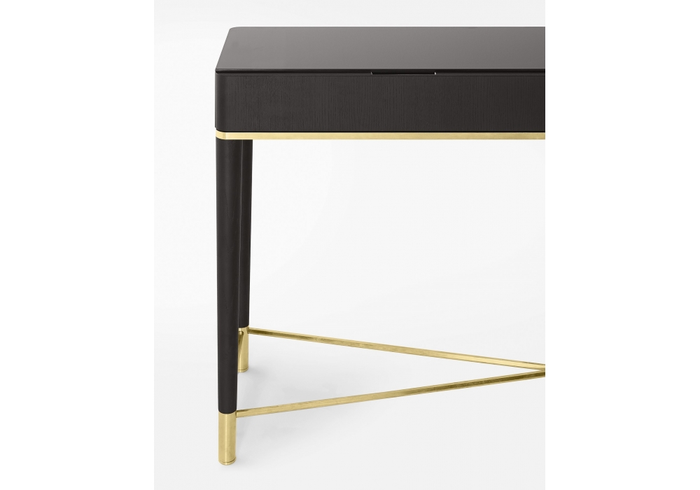 Tama von Carlo Colombo für Gallotti&Radice entworfen, ist eine Konsole mit Schubladen Eschenholz schwarz offenporig lackiert und Metallteile aus Messing satiniert lackiert. Top Glas 6mm vorgespannt schwarzbraun hochglanz lackiert.