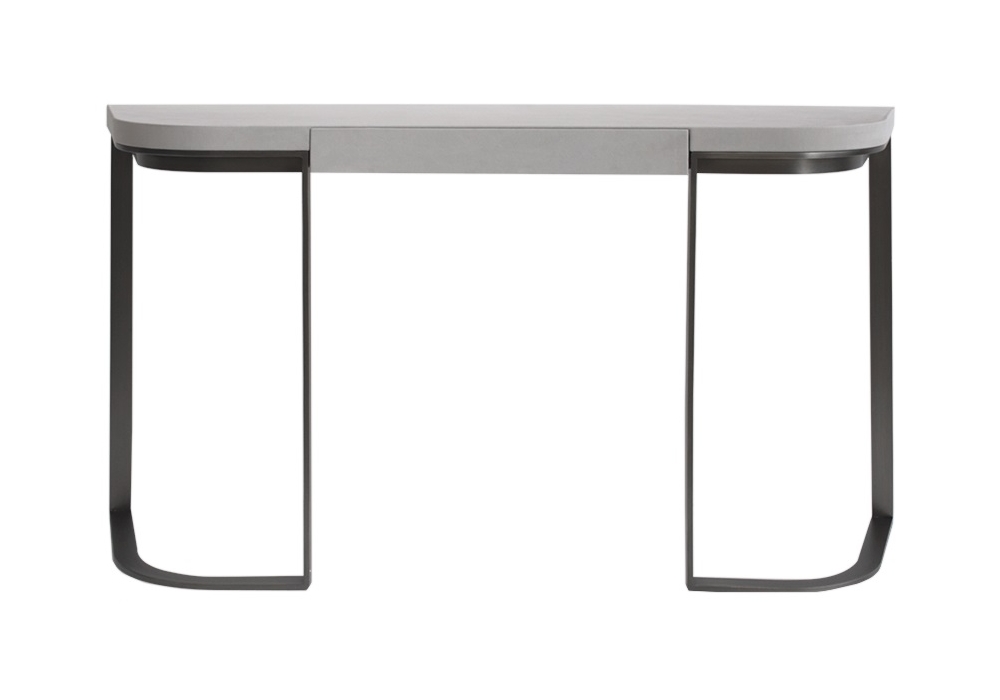 Yves von Roberto Lazzeroni für Baxter entworfen, ist eine schöne Konsole mit Untergestell aus Satin-Messing, handbetätigtes bruniertes Metall oder satin-nickel Metall, mit matt Lack. MDF-Rahmen mit Lederpolsterung.